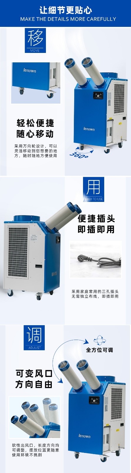 6、兩個(gè)冷風(fēng)口均可270度旋轉,適用于3-5個(gè)崗位的降溫